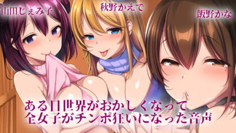 18禁 【おすすめASMR】シチュエーションボイス【秋野かえで 山田じぇみ子 飯野かな】【KU100使用】ある日世界がおかしくなって全女子がチンポ狂いになった音声-デカマラ地味太くん逆痴○編-【斉藤しおん】
