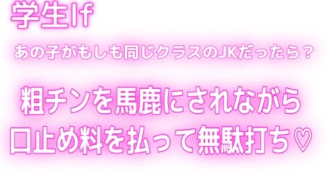 18禁 【おすすめASMR】貢ぎマゾ【八女歩】【学生If♡あの子がもしも同じクラスのJKだったら?】粗チンなのもオナニーしてたのもバレたから口止め料を払っても無駄打ち♡【オトナの哺乳瓶@八女乳業】