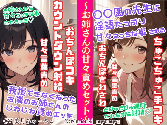 ソフトMさん向け甘々責めセット/我慢できなくなったお隣のお姉さんのじわじわ責めエッチ★〇〇園の先生の淫語たっぷりちゅこちゅこ手コキ&どぴゅどぴゅ連呼射精☆ [どきどきぼいす]