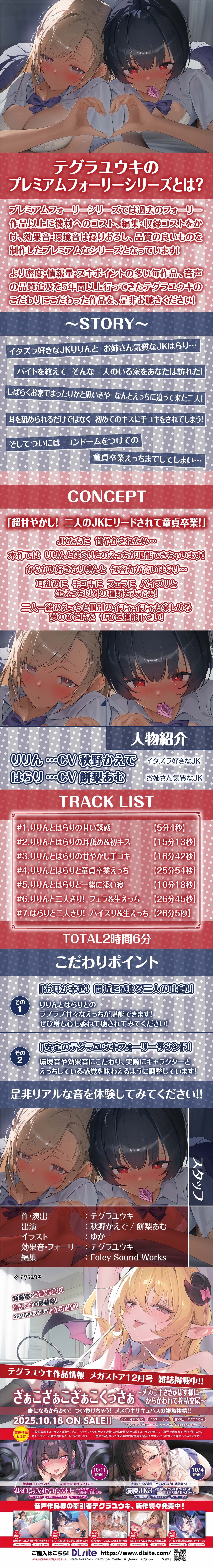 【密着耳舐め】どすけべダブルJKりりんとはらり~甘々JK二人に両耳元で囁かれながら中出し甘やかし交尾~ [テグラユウキ]