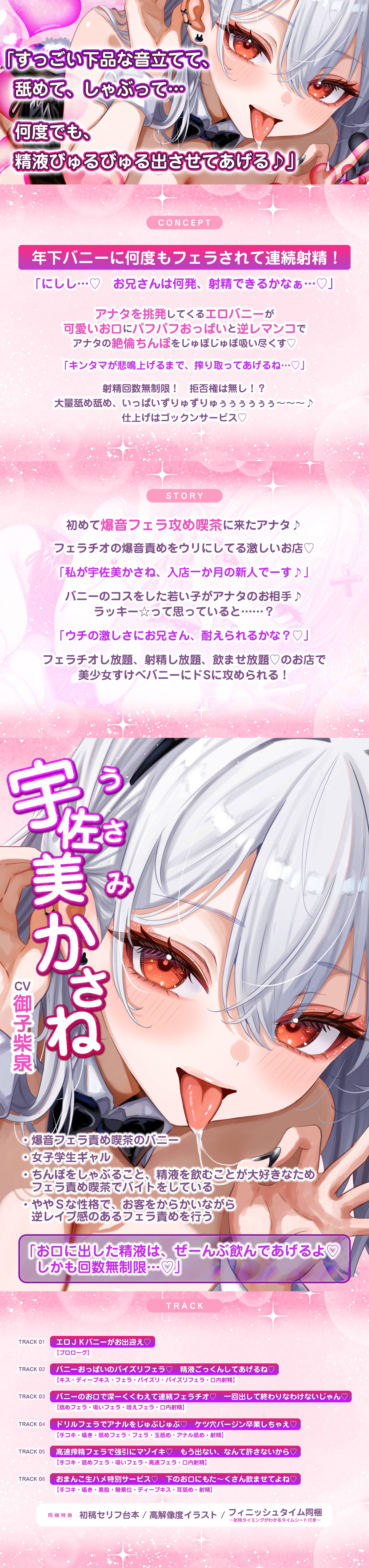 【フェラ逆レ】淫乱JKバニーの爆音フェラ攻め喫茶 ~宇佐美かさねはお口でおち●ぽを溺愛する~《3大特典付き》【スタジオりふれぼ】の聞きどころ