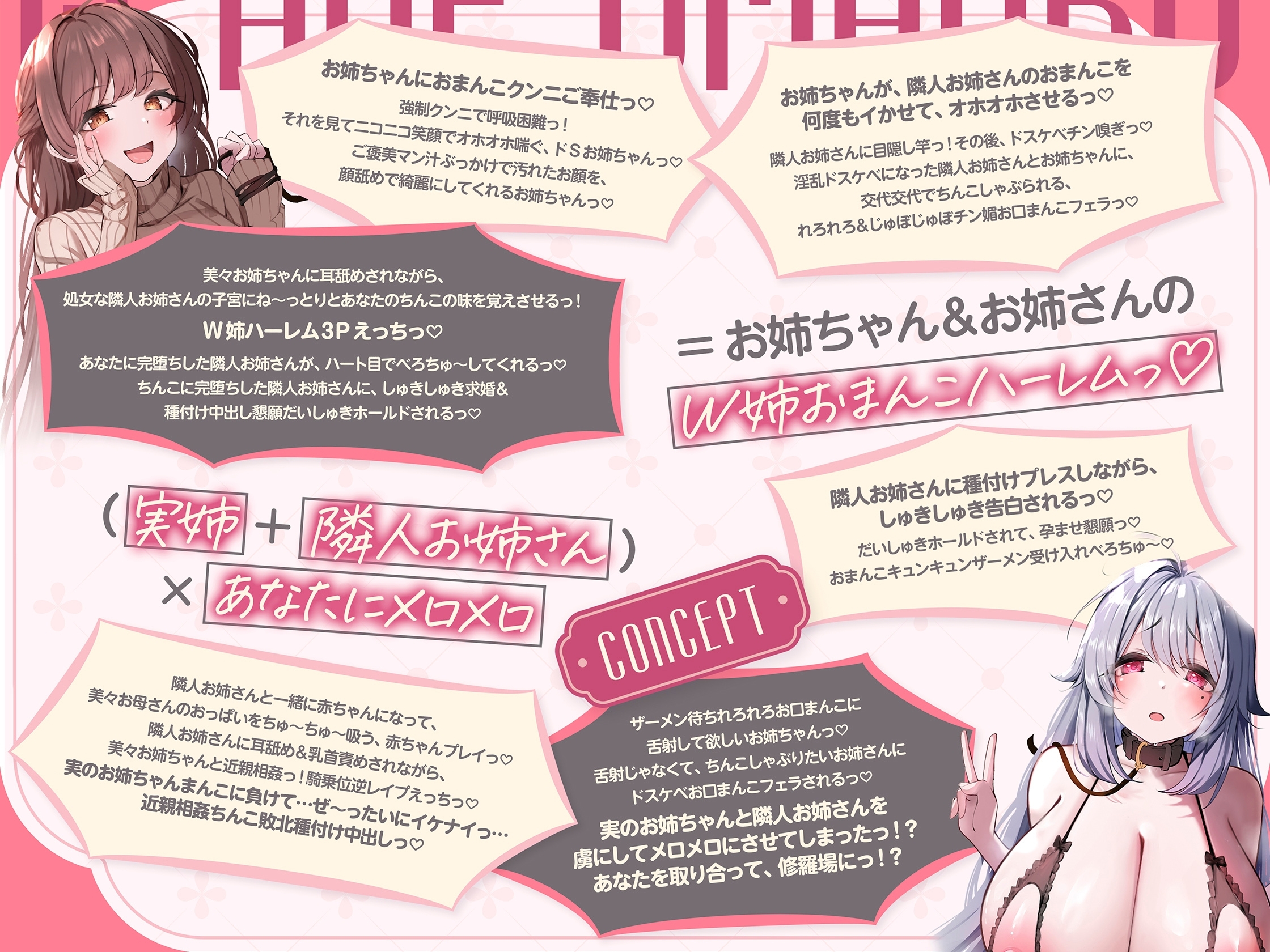 ![【✅早期購入特典付きっ♡✅】『お姉ちゃんが、清純処女で気弱な隣人お姉さんを調教して、エッチ大好きなドスケベおまんこにした。~W姉おまんこハーレム~』 [See you.] 【✅早期購入特典付きっ♡✅】『お姉ちゃんが、清純処女で気弱な隣人お姉さんを調教して、エッチ大好きなドスケベおまんこにした。~W姉おまんこハーレム~』 [See you.]](http://img.dlsite.jp/modpub/images2/parts/RJ01526000/RJ01525030/37c6c668bc56e2ba0f4ad738ec137f9d.jpg)