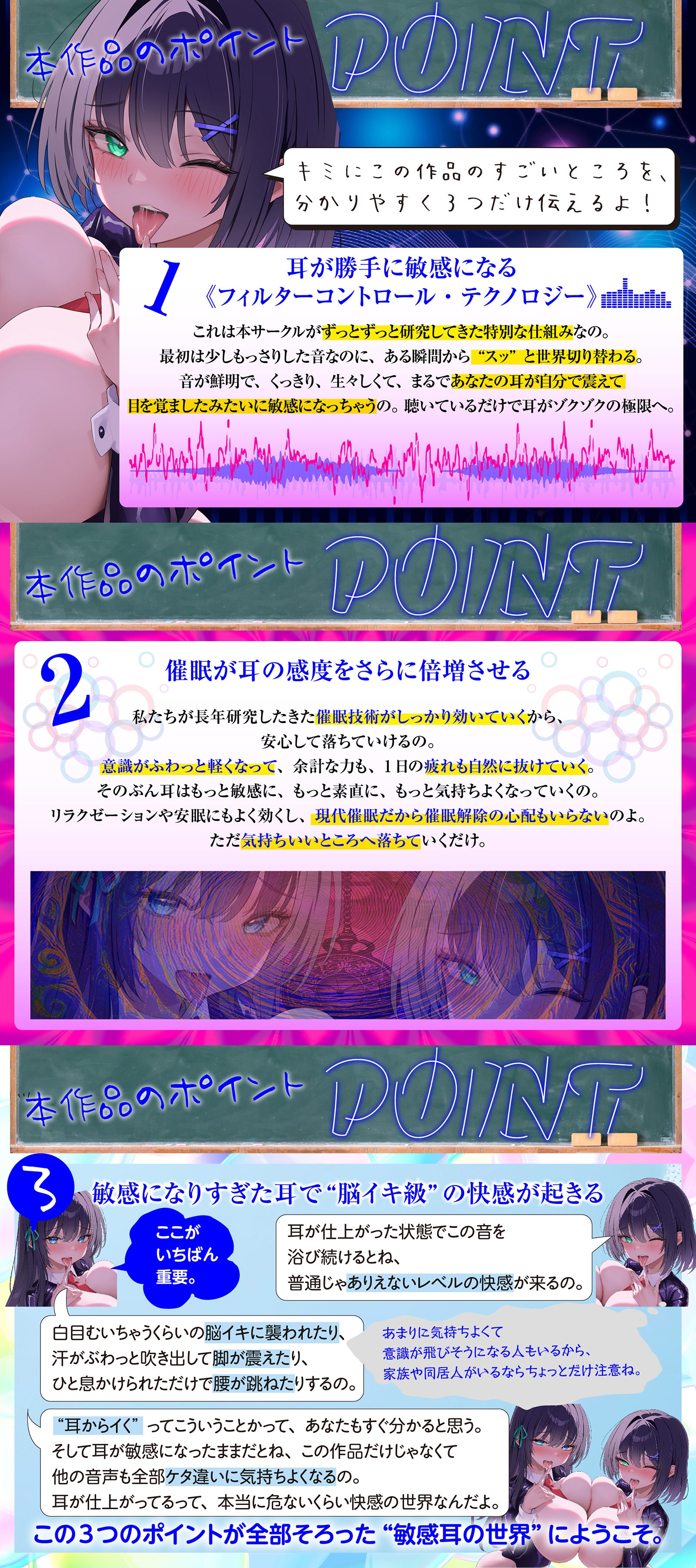 そして耳が敏感になったままだとね、この作品だけじゃなくて他の音声も全部ケタ違いに気持ちよくなるの。