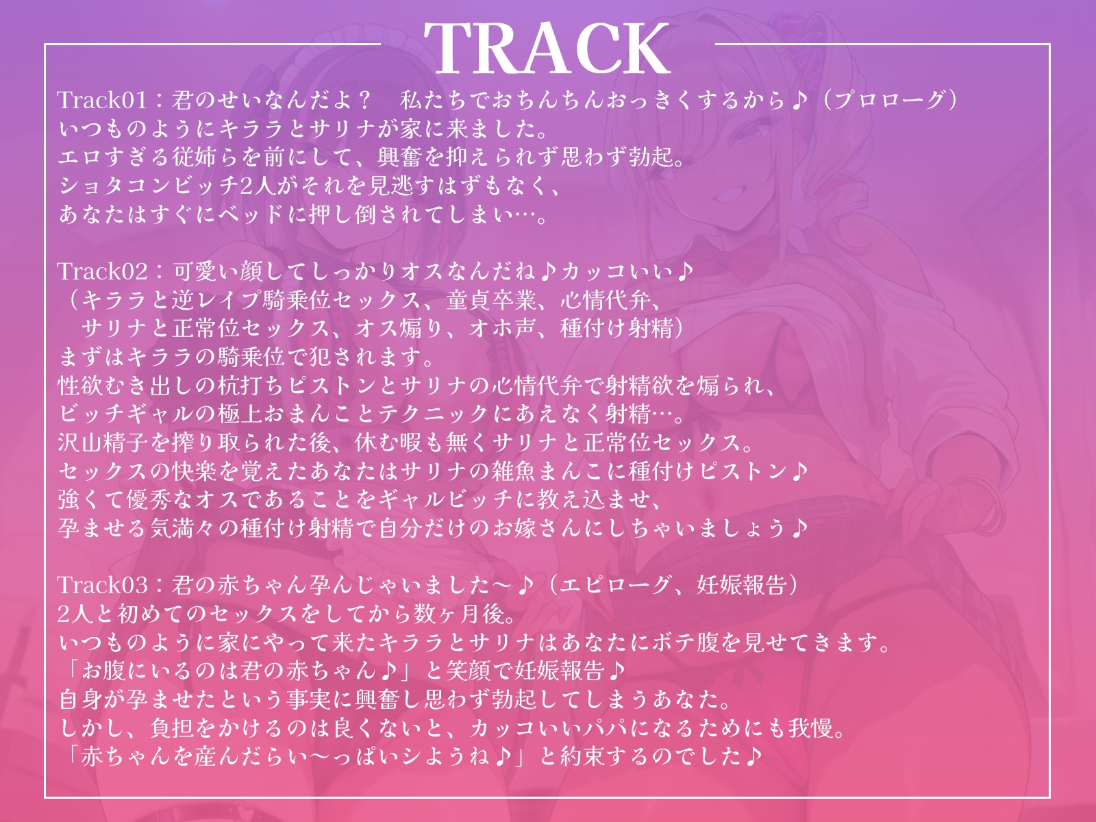 Track02:可愛い顔してしっかりオスなんだね♪カッコいい♪(キララと逆レ○プ騎乗位セックス、童貞卒業、心情代弁、サリナと正常位セックス、オス煽り、オホ声、種付け射精)