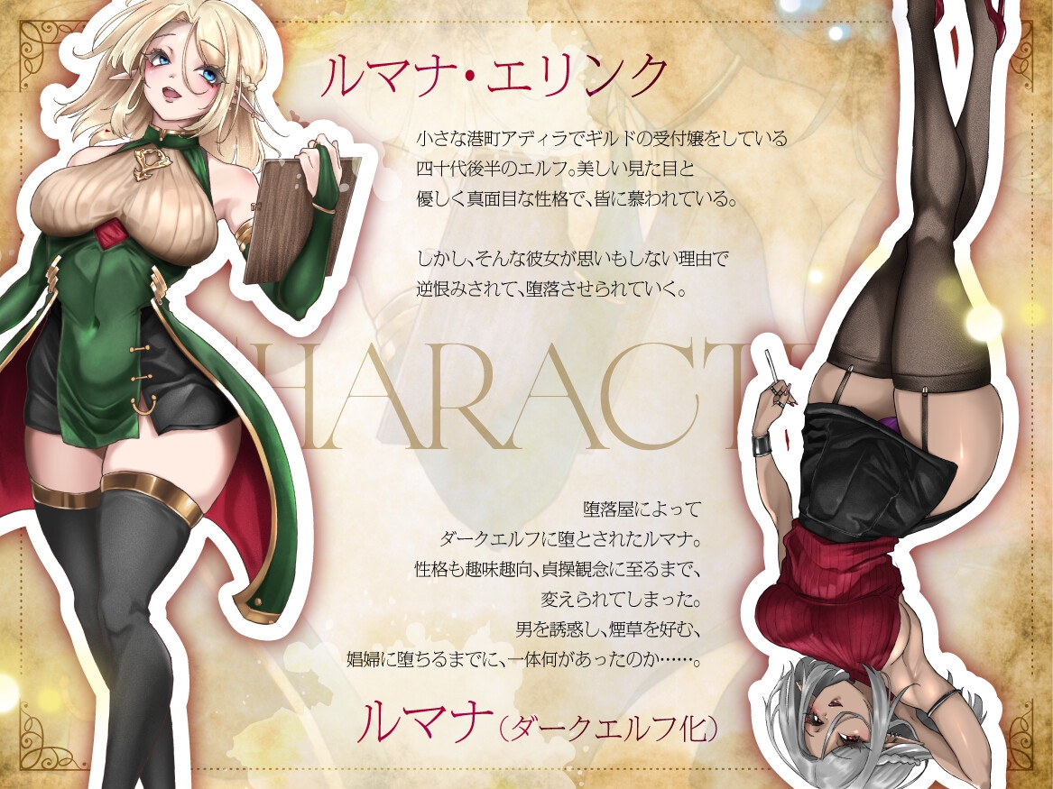 | ジャンル | エルフ/妖精 淫紋 常識改変 寝取り 魔法 悪堕ち 精神支配 褐色/日焼け |