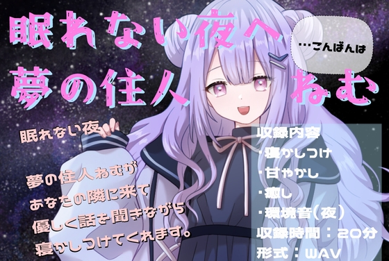 夢の住人ねむがあなたの隣に現れ、優しく話を聞きながら寝かしつけてくれる癒やしのASMR作品です。